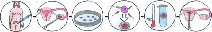 Nach einer hormonellen Stimulation werden Eizellen entnommen (siehe «unbefruchtete Eizellen einfrieren»). Die entnommenen Eizellen werden mit den Samenzellen des Partners befruchtet. In der Regel werden etwa 80% der reifen Eizellen erfolgreich befruchtet, Etwa die Hälfte der befruchteten Eizellen entwickeln sich nach 5 bis 6 Tagen zu Embryonen im Blastozystenstadium. Diese werden dann in winzigen Glasröhrchen tiefgefroren und in flüssigem Stickstoff aufbewahrt bis sie vor dem unmittelbaren Gebrauch aufgetaut und in die Gebärmutter übertragen werden (Embryonentransfer). Diese Methode kommt nur bei bestehender Partnerschaft in Frage.